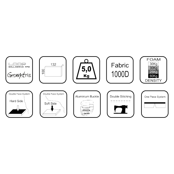 -"Doubleface concept ": Sistem Soft Side/Hard Side.concept allows for the choice of landing surface, depending on the height of fall or jump. Foam side 30kg soft /30 kg Hard.